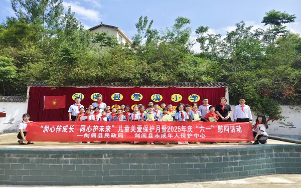 “润心伴成长·同心护未来” 在“六一”国际儿童节来临之际,剑阁县民政局、县妇联、团县委联合县第五教育督导责任区共同走进鸯溪小学,开展“润心伴成长·同心护未来”儿童关爱保护暨庆“六一”慰问活动,为孩子们送上节日祝福。