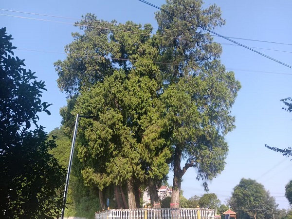来到双峰之间的垭口,庞绍周已在三棵古柏树下等我。这位30多岁的汉子,面善随和。他只有小学文化,但喜欢自学,尤其热爱佛学。他望着古柏神秘地告诉我,明朝末年,佛教徒张万元得到神灵指引来到此处,见这三棵古柏犹如燃烧的三炷香,便在东面山峰半山腰建寺。香火旺,菩萨灵。在清朝和民国时期,巴州、重庆、顺庆等地前来烧香拜佛的人络绎不绝。现在双灵寺虽然被拆,但石塑菩萨还在山岩立着。我望着三株古柏,他们经历了近千年风雨岁月,仍然挺拔向上,生机蓬勃。