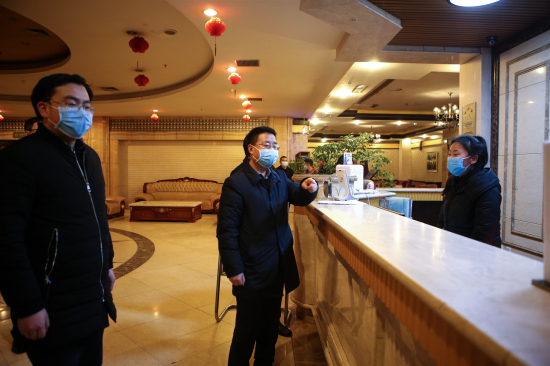 “进入宾馆都能坚持人人排查吗?”“你们平常的值班值守是怎样开展的?”“宾馆前台是否对入住旅客行踪询问登记?”......在旺苍宾馆,余飞宇随即抽查门口值班值守人员和宾馆前台服务人员,余飞宇强调,宾馆要做好日常内部消毒工作,门口值班值守人员要全面落实排查询问登记测量体温等工作,宾馆员工要严格按照相关标准培训,佩戴好口罩等防护用品,确保自身安全,要做好外来人员入住登记询问行踪轨迹和身份证、电话号码登记录入等工作,片区警察要协助前台运用大数据排查入住人员有无疫区接触式,全面落实好入住人员承诺制度,确保入住人员安全。相关行业部门在疫情防控期间必须要做到全面检查到位,不落一家,不少一户,做到动态时时监控到位。商场超市要严格落实出入戴口罩和疫情防控各项措施,做好消毒灭菌等环境卫生管控。