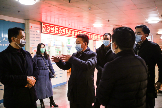 “医院预检分诊是怎么落实的?”“发热病人是怎么处置的?”“防疫期间医院是怎么值班值守的?”......在肺炎诊治定点医院,余飞宇详细了解了医院发热门诊处置等工作落实情况,余飞宇向坚守岗位的一线医护人员致以诚挚的谢意,叮嘱医护人员一定要按照流程操作,在保障自身安全的前提下,全力做好人员排查工作。余飞宇强调,疫情期间医院等场所人员密集、流动量大,医务工作者要坚守岗位、在岗尽责,做好门诊大厅、出入通道等场所的消毒防护和卫生保洁;要严格落实预检分诊制度,规范处置流程,在岗工作人员要加强检测排查,发现发热病人、疑似病人要迅速隔离、立即上报,确保及时处置,全力消除隐患;要积极宣传有关政策措施和疫情预防知识,号召广大人民群众切实做好个人卫生防护,勤洗手、戴口罩,增强自我防护意识。