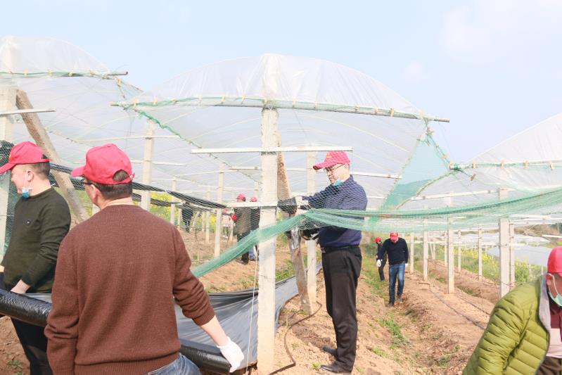 受疫情影响,柳沟镇大石村蟠桃园、南庙村葡萄园,由于劳动力不足,园内幼苗还未施肥、翻土、覆膜、除草等。在了解这一情况后,柳沟镇党委第一时间联系了挂联部门县委宣传部,组织了党员志愿者队伍,走下田间地头,和乡亲们一起翻土、除草、施肥、清垄、植苗。突击队员们分工有序、各负其责,现场一片繁忙景象。