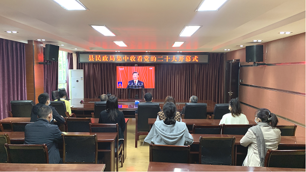 10月16日上午,剑阁县民政局机关、各直属事业单位、乡村振兴驻村工作队及抗疫前线志愿服务人员等认真收听收看党的二十大开幕会盛况