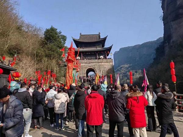 游客在关楼前观看开关祈福表演