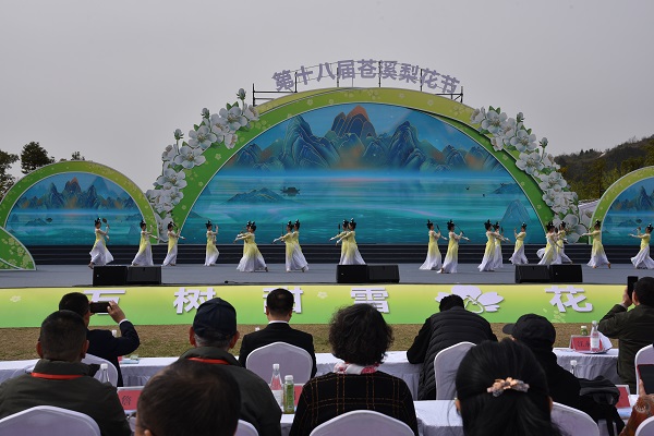 开幕式现场,一首《梨花又开放》歌曲拉开序幕,情景表演唱《We are in 苍溪》、女子舞蹈《梨仙湖》等精彩节目相继上演,一步步将现场的氛围推向高潮,赢得在场观众的阵阵掌声。
