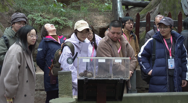 在翠云廊景区,采风团观看了薅草锣鼓和“交树交印”仪式表演,演员们生动展现了当时的场景,赢得考察团成员阵阵掌声。走进翠云廊景区核心区,创作者们惊叹于千年古柏的雄伟壮观,被这份来自千百年的静谧与庄严深深吸引。