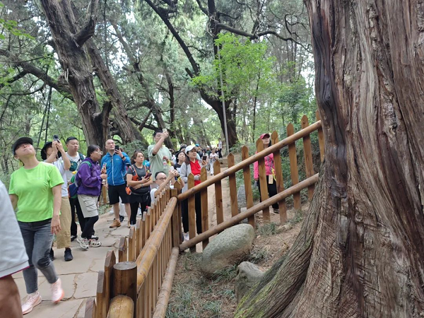 启动仪式后,嘉宾们首先参观了翠云廊景区,在讲解员的带领下,漫步于苍劲挺拔的古柏林间,近距离观赏了“剑阁柏”“帅大柏”等名木古树,感受“三百长程十万树”的壮阔景象。随后,徒步队伍从汉阳镇出发,穿越黄连垭等历史节点,沿途千年古柏夹道,驿道遗迹斑驳,专家现场讲解古树保护与蜀道文化,让徒步成为“移动的课堂”。