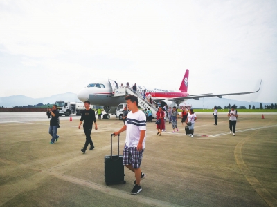 该航线的开通促进了三地在文化、旅游、贸易及人才交流等领域的互利合作,对广元融入国家“一带一路”建设,融入四川“四向拓展、全域开放”立体全面开放格局,加快建设北向东出桥头堡等具有重大意义。图为7月2日,经过3个小时的飞行,乌鲁木齐至广元的航班到达盘龙机场。