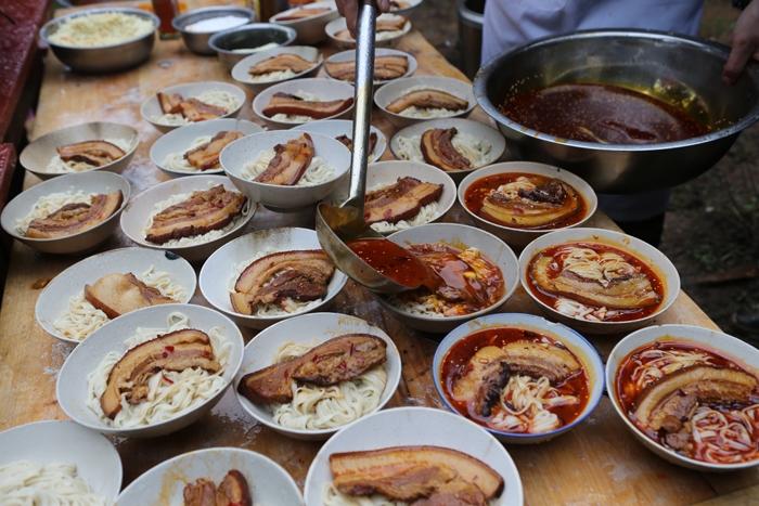 农历二月十五,位于剑阁县汉阳场镇不远处的望阳山文化公园人声鼎沸,热闹非凡,场镇居民及附近乡邻还有不少远地游客齐聚一堂,参加汉阳铺大肉面会。
