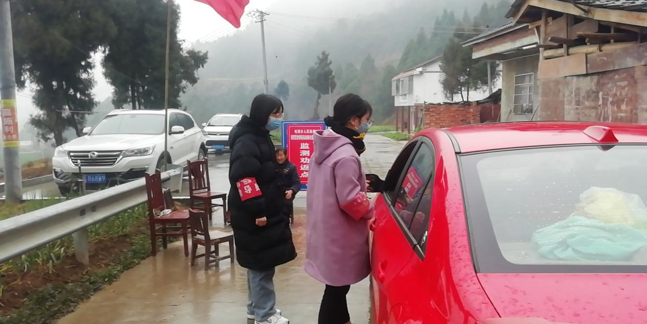 没有防护服,没有防护手套、帽子,只有自带的一个一次性医用外科口罩,按照该村两委值班安排,蒲润英、蒲佳尧一大早冒着小雨来到蒙垭寨疫情检测点,当监测点有车辆人员通过时,两个身着“红袖标”的年轻身影总是及时迎上去,详细询问并登记在册。